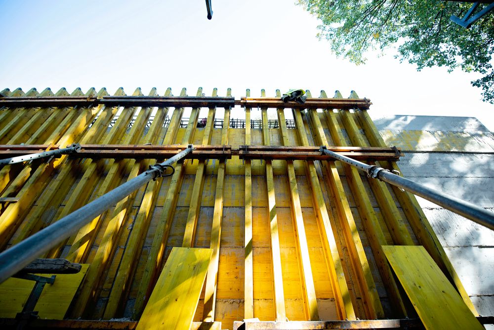 W celu jak najlepszego oddania koncepcji architekta ULMA zaproponowała szalunek DSD, na który nabijano sklejkę docinaną zgodnie z wytycznymi projektu. Odcisk deskowań wykonywany jest tak, by odwzorować klasyczne deskowania ciesielskie. Aby uzyskać ściany bez widocznych otworów po ściągach, zastosowano betonowanie warstwami po 50 cm wysokości oraz ściągi przepuszczane ponad deskowaniem. Stropy kondygnacji nadziemnych realizowane są przy użyciu tradycyjnego deskowania dźwigarkowego ENKOFLEX, które dopasowało się do spadków dachu.
