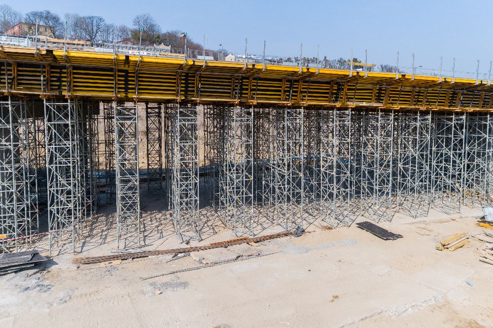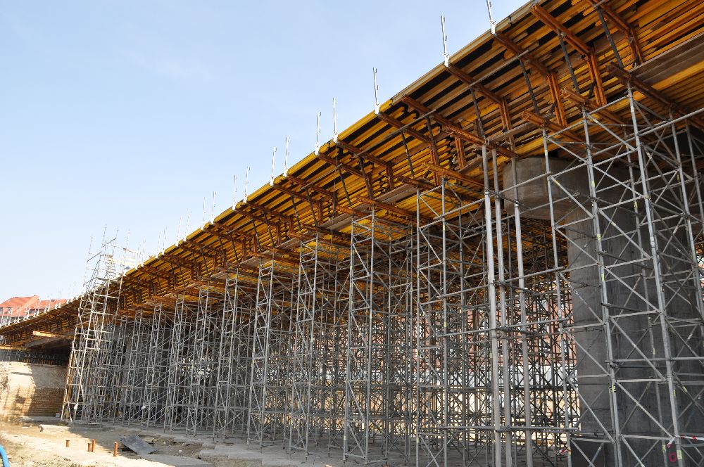 W ramach inwestycji Biskupia Górka powstają cztery obiekty inżynieryjne. Największym z nich jest dwunitkowa estakada o długości jezdni prawej wynoszącej 88m oraz jezdni lewej - 77,5m. Jest to obiekt trójnitkowy i trójprzęsłowy o wysokości belki 1,7m. W trakcie prac ziemnych został odkopany fragment Bastionu Wiebego z XVII wieku, w związku z czym powstała konieczność wykonania bramki nad historyczną budowlą w przęśle E3-E4. Bramka została zaprojektowana z kształtowników DIPN500 o długości 15m oraz HEB450 o długości 12m, podpartych pośrednio przez belki oczepowe HEB320 na wieżach MK-150. Poza fragmentem ustroju nad Bastionem Wiebego, deskowanie jest podpierane bezpośrednio przez wieże T-60. Płyta ustroju nośnego jest realizowana za pomocą deskowania Enkoform HMK.