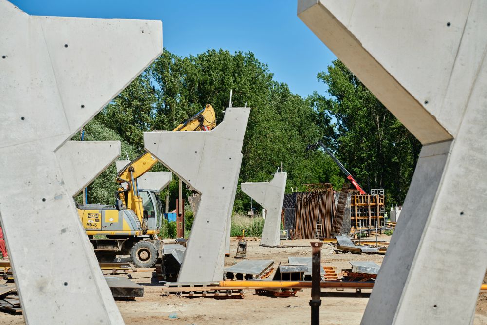 Górne fragmenty podpór pośrednich wykonano za pomocą indywidualnie zaprojektowanych i wykonanych form, które uwzględniały m.in. indywidualną geometrię każdego ze słupów, a także wnęki na listwy oświetleniowe.