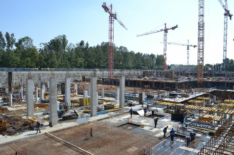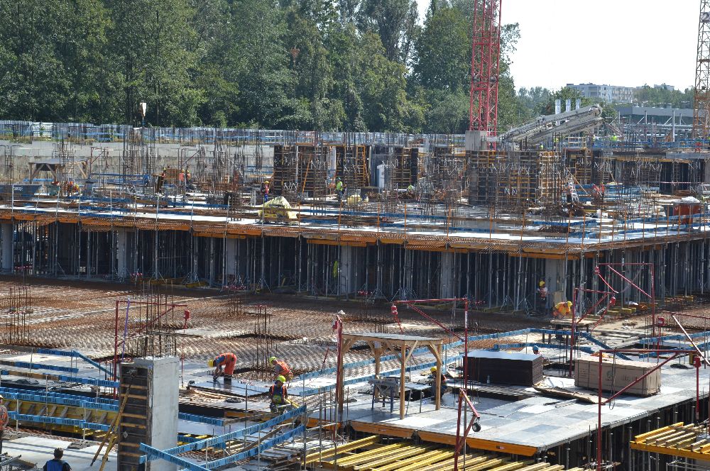 Generalnym wykonawcą obiektu jest firma Erbud S.A. Budowa zbliża się do momentu, w którym prace konstrukcyjne będą najbardziej nasilone na wszystkich frontach roboczych. ULMA Construccion Polska S.A. dostarczyła na budowę m.in. ponad 18 000 m2 deskowania stropowego (w tym 12 000 m2 deskowania panelowego CC-4). Deskowania stropowe zostały wyposażone w system słupków VR o wysokości 150 cm, gwarantujących odpowiednie zabezpieczenie dla pracowników poruszających się po zbrojeniu. Słupy konstrukcyjne, w zależności o kształtu przekroju, realizowane są za pomocą deskowania ORMA, bądź TUBUS.