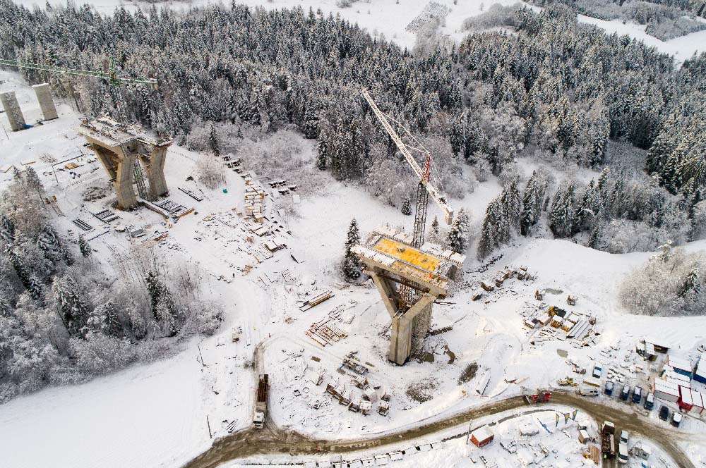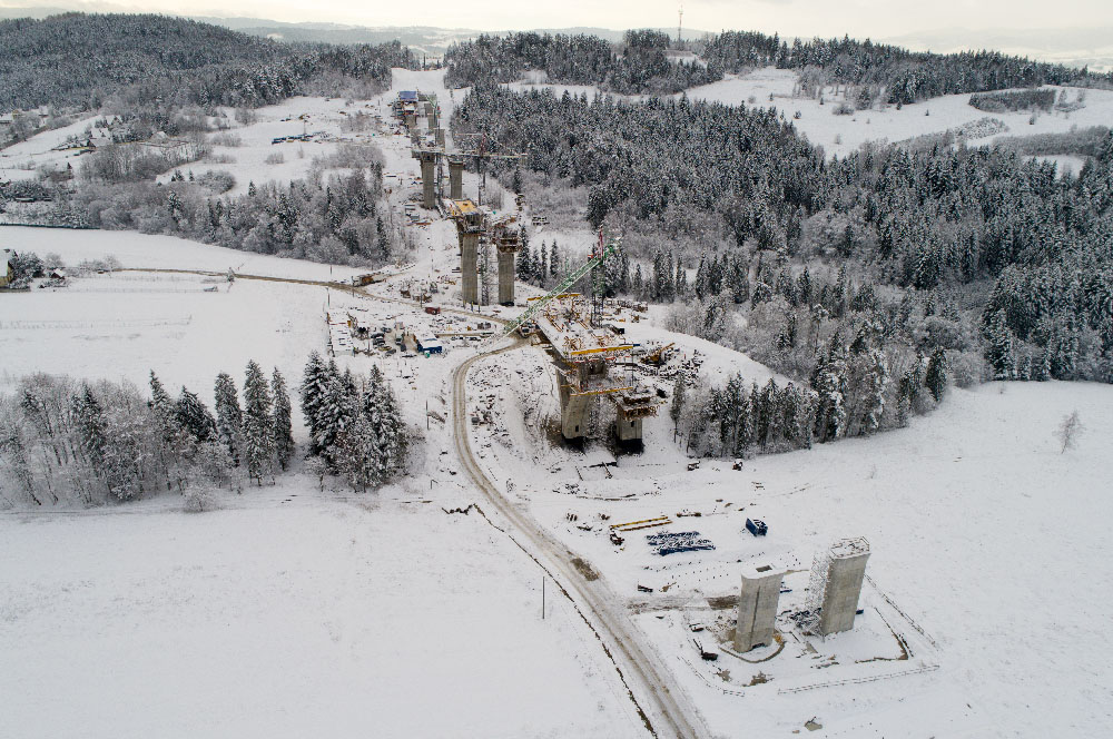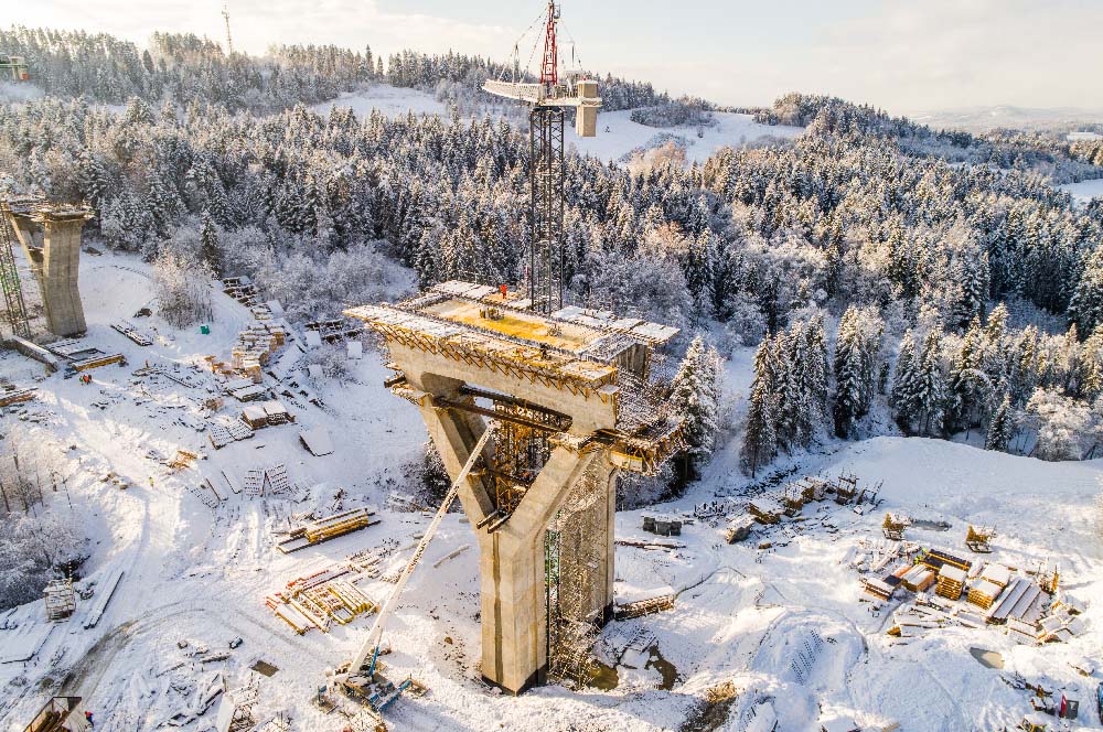 Na obiekcie 21 zrealizowano również trzy segmenty startowe, a na jednym z nich zakończono montaż wózka formowania wspornikowego z deskowaniem firmy ULMA. Deskowanie wózka, ze względu na ogromne gabaryty zostało zmontowane na budowie, a następnie dopasowane do nawisu. Na potrzebę wykonania jednego segmentu startowego ULMA dostarczyła 94 blaty, tzw. pierwomontaże. W sumie wyposażyła budowę w dwa takie komplety. Do wykonania segmentów użyte zostały następujące systemy: wieże podporowe MK, wieże podporowe T-60, deskowanie uniwersalne ENKOFORM VMK oraz różnego rodzaju profile stalowe.