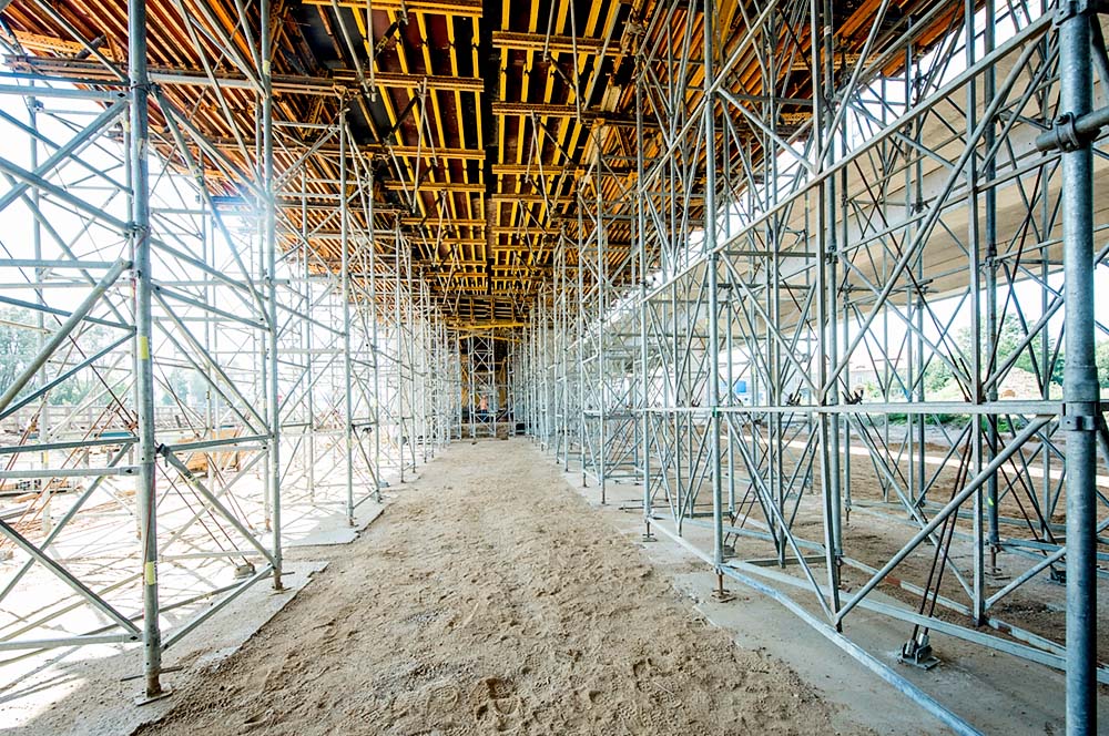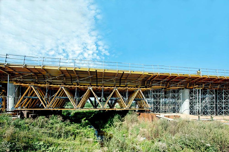 W obu przypadkach przy realizacji najdłuższych przęseł nurtowych zastosowano kratownice MK o rozpiętości 20 m i wysokości 3,5 m. Podczas realizacji wiaduktu MS-16 wykorzystano 6 podwójnych kratownic, dla WSJ-8 – 8 kompletów. W celu zapewnienia bezpiecznego demontażu kratownice ustawiono na stalowych profilach bazowych, które wyposażono w system rolkowy. Cała konstrukcja została ułożona na profilach HEB320, które posłużyły jako szyny prowadzące podczas demontażu deskowania.