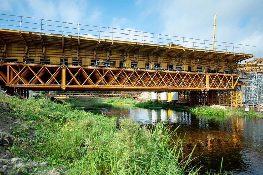 Przyczółki obiektu zostały wykonane przy pomocy systemu PRIMO. Podczas budowy ustroju nośnego wykorzystano niezwykle uniwersalny system MK, a do podparcia posłużyły wieże T-60.