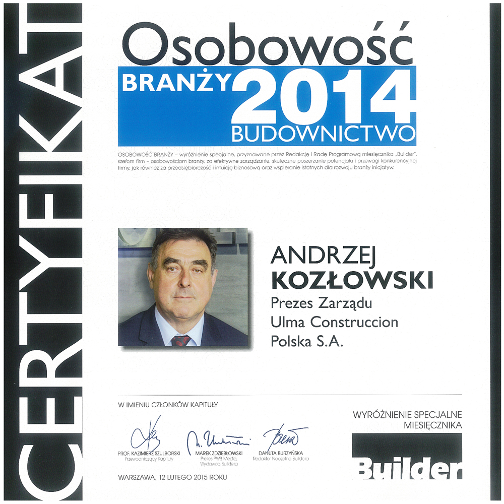 Prezes Andrzej Kozłowski wyróżniony tytułem „Osobowość Branży”