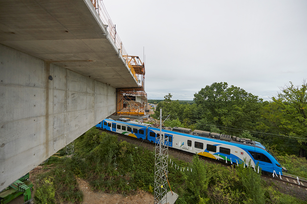 Obiekt powstaje przy użyciu dwóch metod – nasuwania podłużnego oraz nawisowej. Do realizacji części w technologii nasuwania podłużnego wykorzystywane są formy, których budowa bazuje na uniwersalnym systemie ENKOFORM HMK. Dostarczone przez firmę ULMA stanowisko do nasuwania miało długość 30 m, co pozwalało na wykonanie segmentów o długościach do 29,25 m.