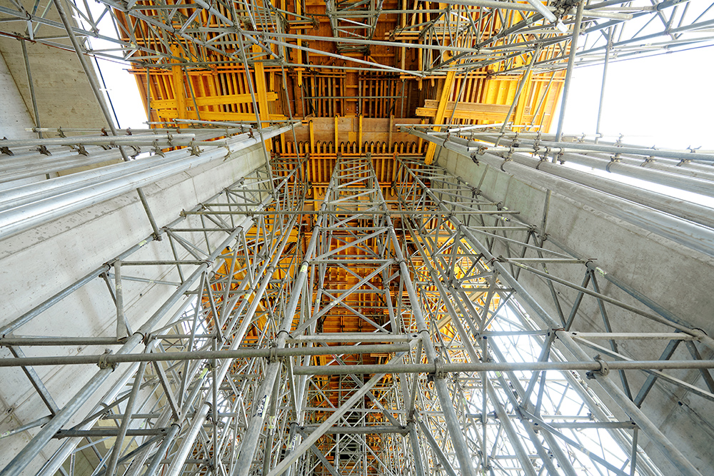 Podparcie deskowania zostało zaprojektowane z użyciem wież podporowych T-60, a jego uzupełnienie stanowią podpory aluminiowe ALUPROP. W przęśle 1P-2P nad przejazdem technologicznym zaprojektowano bramkę z podparciem z wież T-60 zwieńczonych belkami oczepowymi. Dźwigary bramki przewidziano z profili HEB320. W przęśle 4P-5P zaprojektowano z kolei dwuprzęsłową bramkę technologiczną nad czynnymi torami kolejowymi.