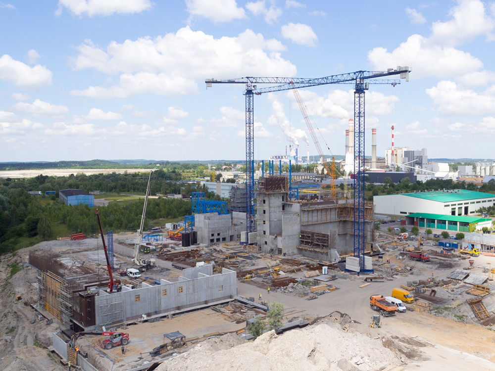 Najważniejszym obiektem spalarni jest bunkier, którego część podziemna ma wysokość ponad 12 m a nadziemna blisko 33 m. Płytę fundamentową obiektu wykonano z wykorzystaniem lekkiego systemu COMAIN. Najniżej położone ściany jednostronne bunkra o wysokości 2,65 m wznoszono z zastosowaniem kozłów oporowych w systemie MK w rozstawie co 1,35 m i deskowania uniwersalnego DSD 12/20 o wysokości 2,70 m. Wyższe ściany obiektu realizowano za pomocą wsporników wznoszących BMK o szerokości 3,60 - 4,8 m, na których ustawiono deskowanie ORMA o wysokości 5,4 m (zestaw 2 x 2,70 m). Do wykonania klatki ewakuacyjnej bunkra o wysokości blisko 45 m zastosowano pomosty zapadkowe KSP z deskowaniem ORMA o wysokości 5,40 m. W jednej ze ścian bunkra znajduje się wlot odpadów, którego skośne ściany wykonano w deskowaniu ORMA podpartym na podporach stropowych ułożonych prostopadle do płaszczyzny skosu. Następnie wykonano konstrukcję wsporczą z rygli MK i podpór E zakotwioną w płycie skosu, której zadaniem było przejście z płaszczyzny skosu (45 stopni) do płaszczyzny poziomej, na której posadowiono wieże T-60 stanowiące podparcie dla ściany tarczy wykonywanej powyżej. Deskowanie tarcz o długości 25 m i wysokości od 14 do 18 m, odchodzących prostopadle od krótszej ściany bunkra (15,6 m) oraz deskowanie stropu przylegającego do tarcz, zaprojektowane w systemie ENKOFLEX, oparto na wieżach T-60 o wysokości od 13 do 18 m. Natomiast do podparcia deskowania tarczy i stropów przy bunkrze od strony kotłowni, ze względu na wykonywaną równolegle konstrukcję stalową montowaną pod stropem, przewidziano indywidualną konstrukcję wsporczą z wież MK-360 o maksymalnej wysokości 11,5 m oraz 4 kratownic z rygli MK o wysokości 2,5 m i rozpiętości w świetle podpór 12,5 m. Na kratownicach ułożono kilka rusztów z belek stalowych (HEB 300, HEB 320 i HEB 400), które mają za zadanie przekazywać obciążenie od stropu i tarczy (4,5 m) rozkładając je równomiernie poprzez kratownice na każdą z 4 wież MK.