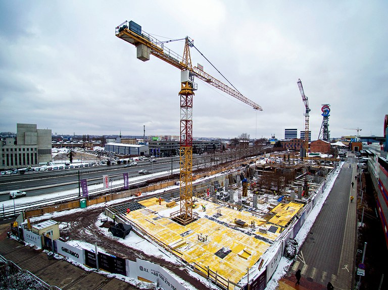 Biurowiec jest realizowany z wykorzystaniem deskowania modułowego ONADEK w przypadku stropów żelbetowych monolitycznych w podziemiu oraz deskowania ENKOFLEX do montażu stropu prefabrykowanego filigran w nadziemiu. Dla zwiększenia poziomu bezpieczeństwa oraz przyspieszenia pracy zastosowano stoliki VR do wykonania krawędzi stropu. Trzon budynku wykonywany jest z wykorzystaniem deskowania ORMA oraz pomostów zapadkowych KSP.