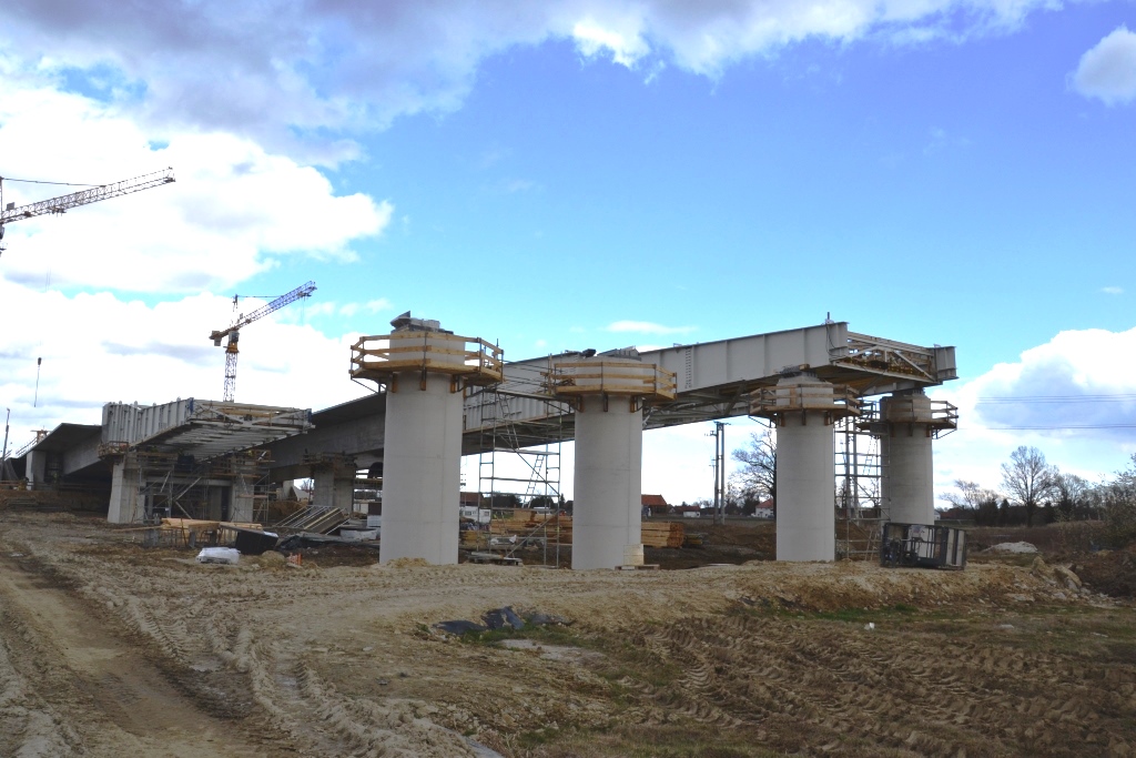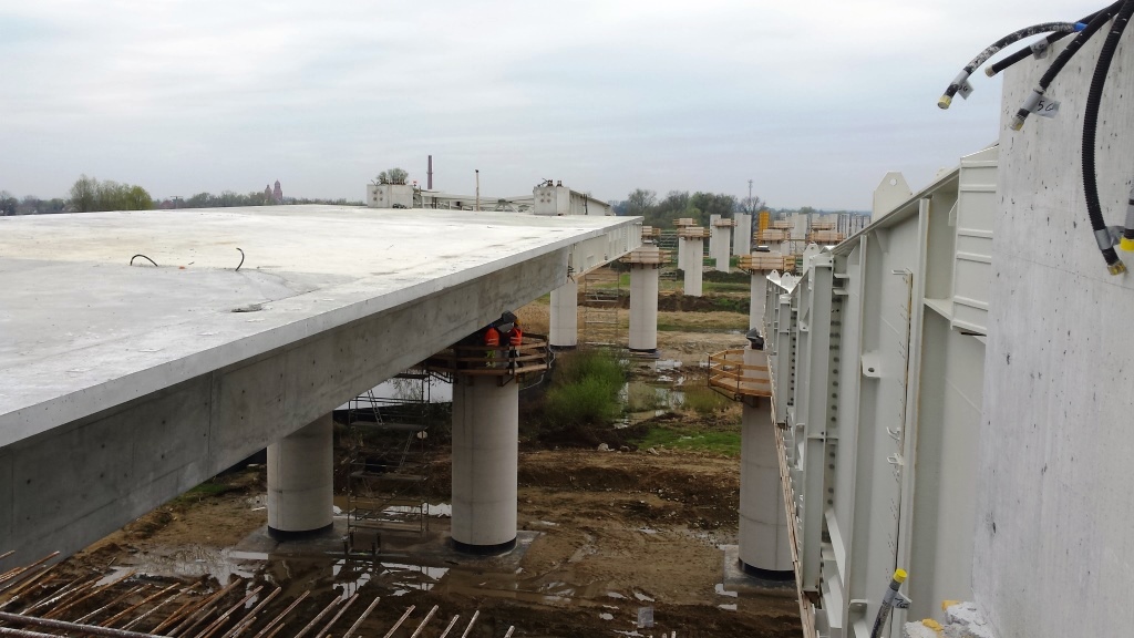 Przykład takiej realizacji stanowi dwunitkowy wiadukt MS-6 o długości 746 m, zlokalizowany w ciągu drogi ekspresowej S5 na odcinku pomiędzy Korzeńskiem a węzłem Widawa Wrocław. Ze względu na trudne warunki gruntowe nie było tu możliwe zastosowanie tradycyjnego podparcia na rusztowaniach stacjonarnych.